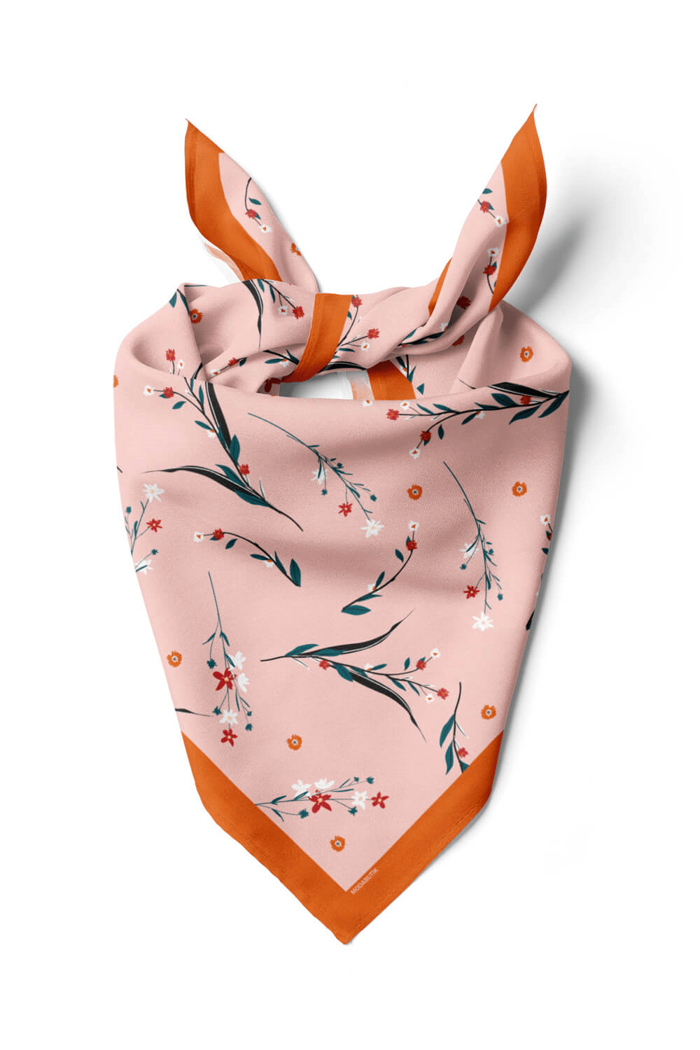 Y88 Kadın Flow Desenli Bandana 50x50 Pudra DG0170-22 Snz (8681225127479)