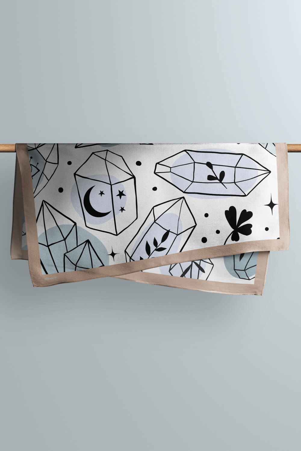 Y11 Kadın Geometrik Desenli Bandana 50x50 Siyah Beyaz Mavi DG0474-22