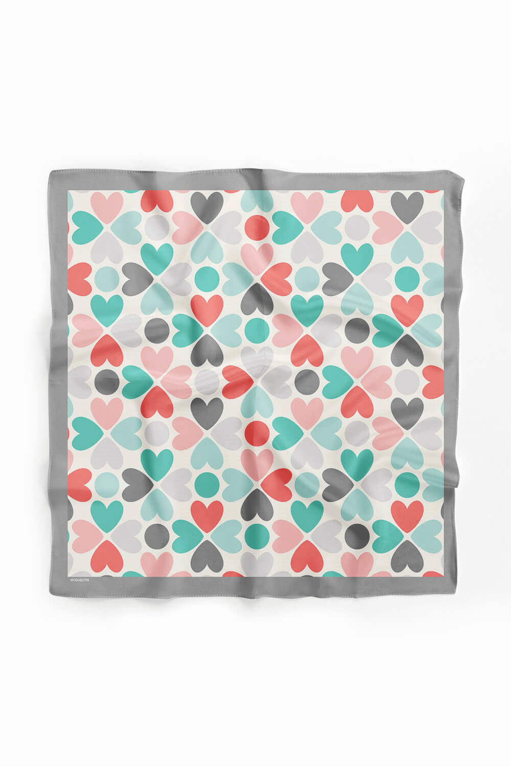 V40 Kadın Kalp Desenli Bandana 50x50 Yeşil Kırmızı DG0122-22 (8681225126991)