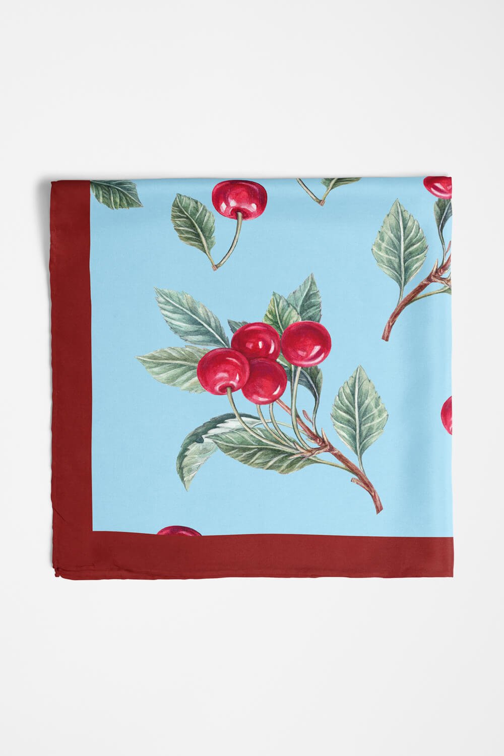 B13 Kadın Kiraz Desenli Bandana 50x50 Kırmızı Yeşil DG0350-22 Snz