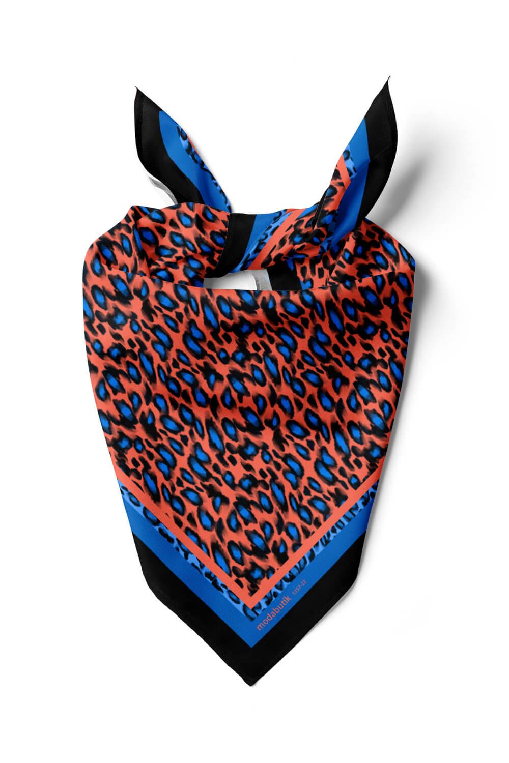 A83 Kadın Mavi Turuncu Damla Desenli 50x50 Bandana (DG1157)