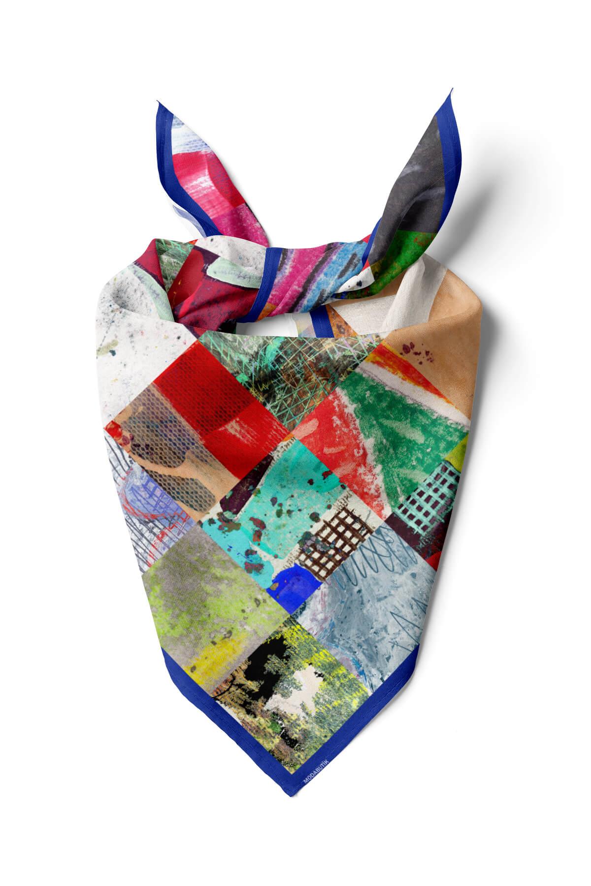 Kadın Patchwork Desenli Bandana 50x50 Yeşil Kırmızı DG0277-22