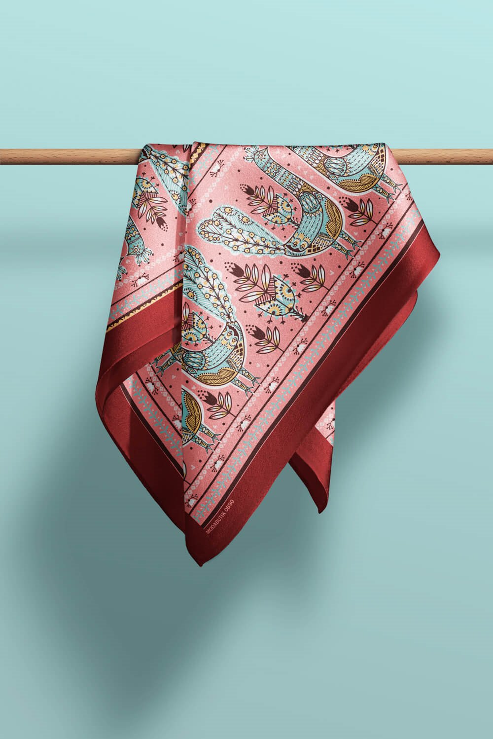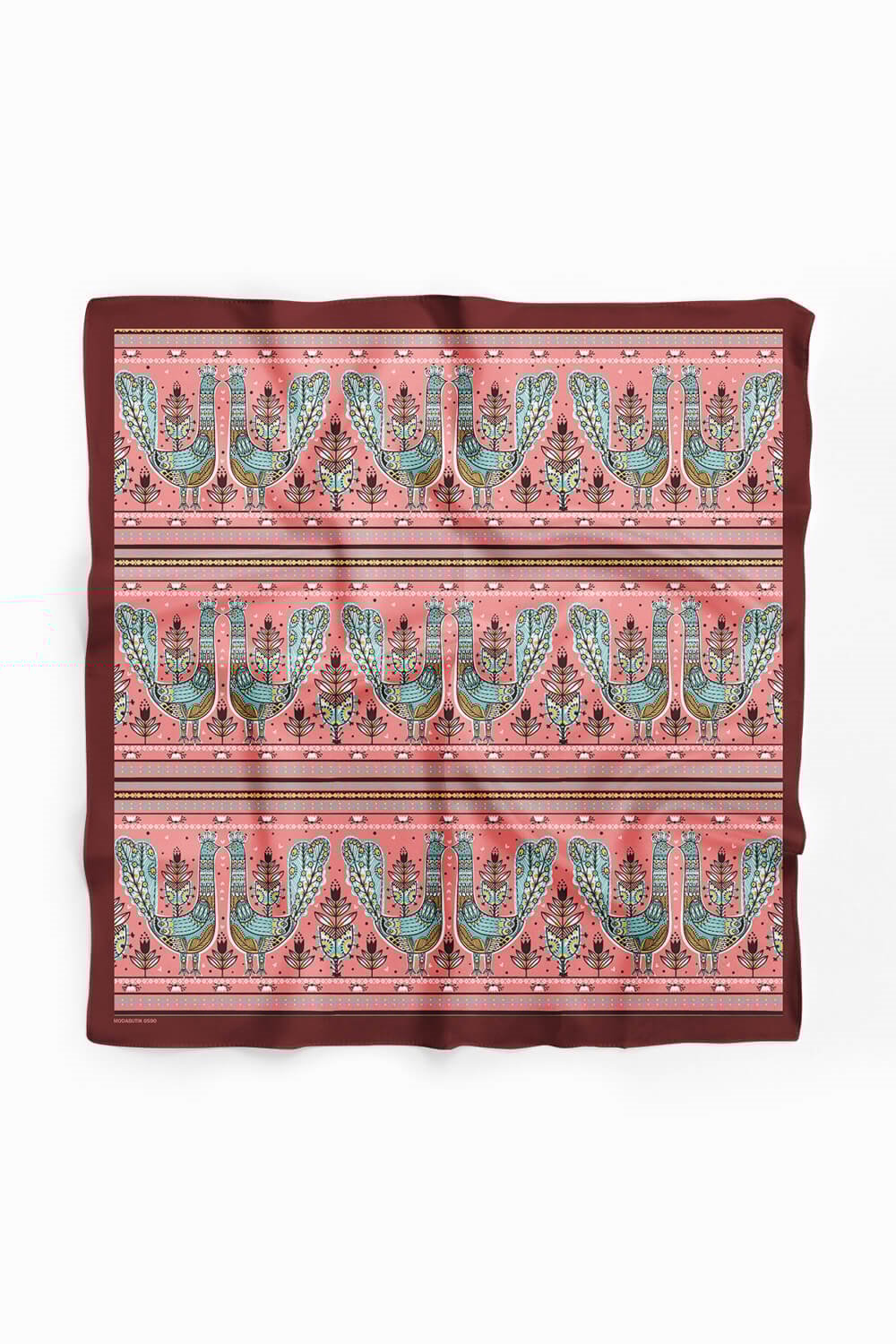 Z52 Kadın Pembe Tavuskuşu Etnik Desenli 50x50 Bandana