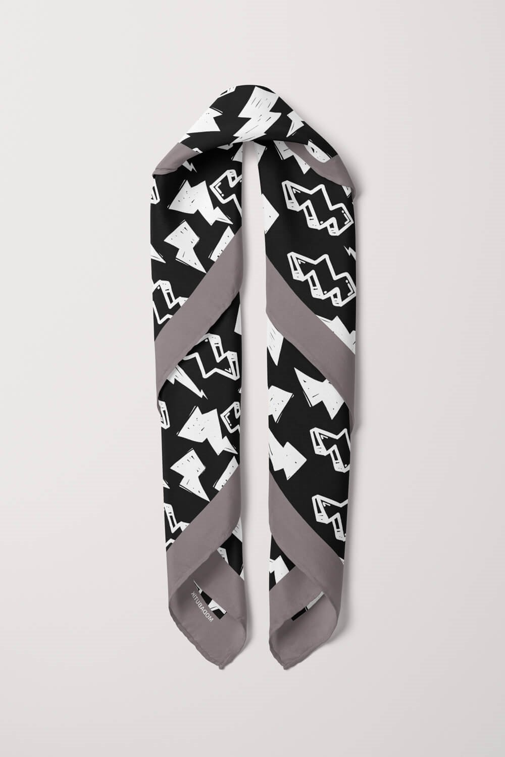 Y75 Kadın Şimşek Desenli Bandana 50x50 Siyah DG0150-22 (8681225127271)