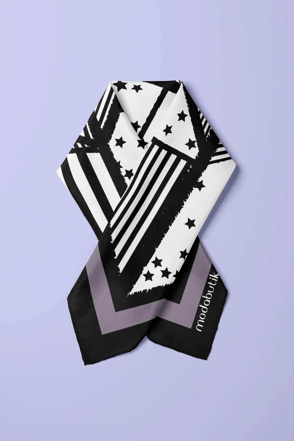 Kadın Sİyah Beyaz Square Star Desenli 50x50 Bandana (DG1048)
