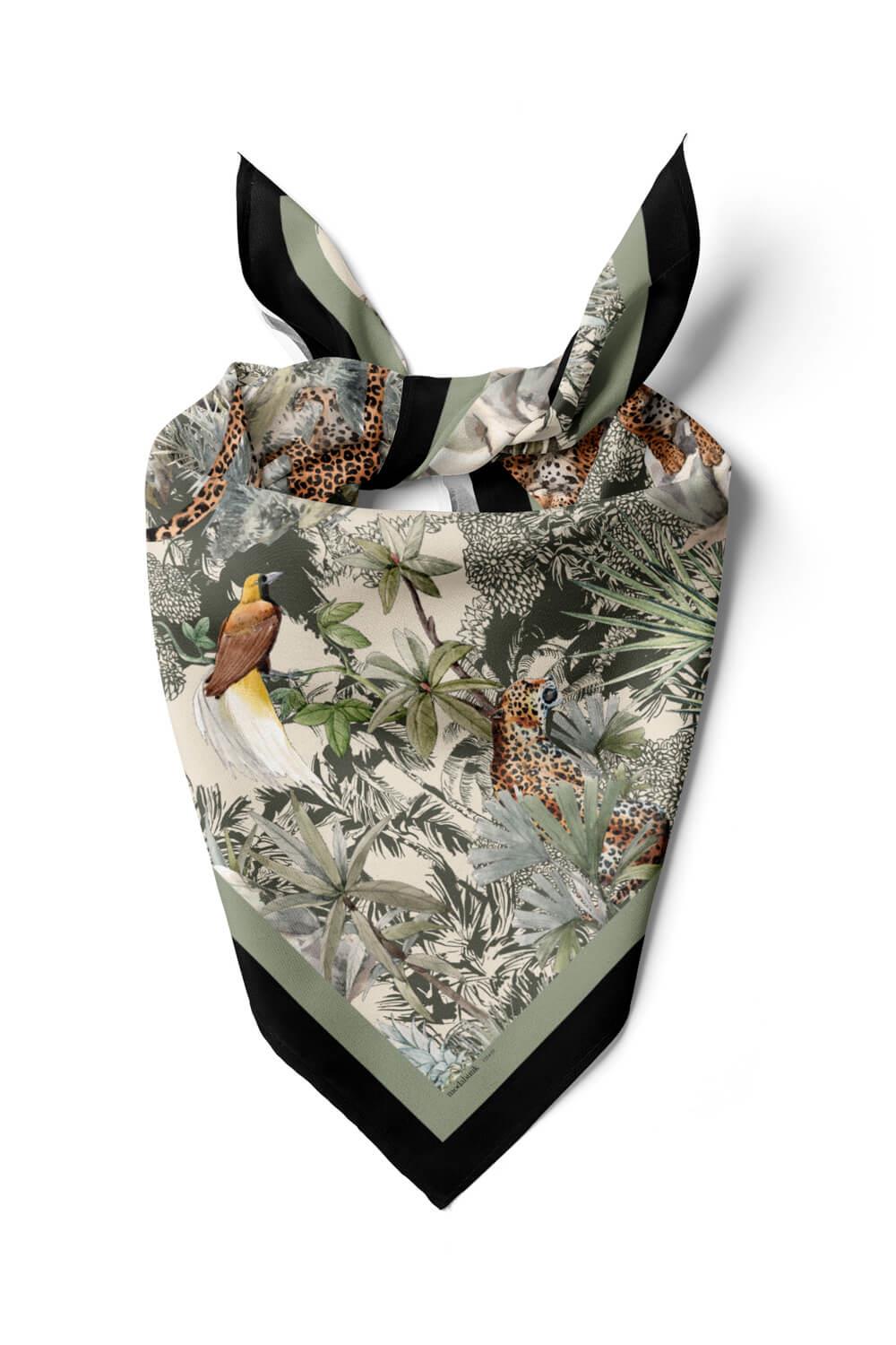 H35 Kadın Su Yeşili Krem Amazon Desenli Bandana HYL DG01124-22 (BN8683225113356)