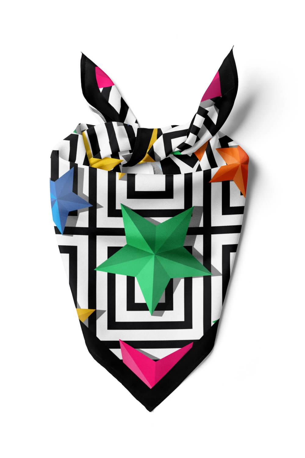 Kadın Yıldız Desenli Bandana 50x50 Sarı Yeşil DG0343-22 (8681225129206)