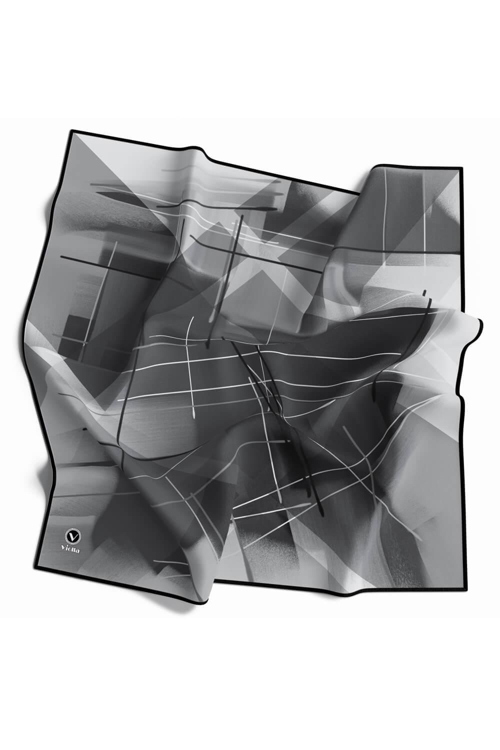 Kirstal Geometrik Desenli Gri Renkli 90x90 Eşarp (İpek İçermez) Kenar Dikiş Şekli El Dikişli (DGN51658-5)