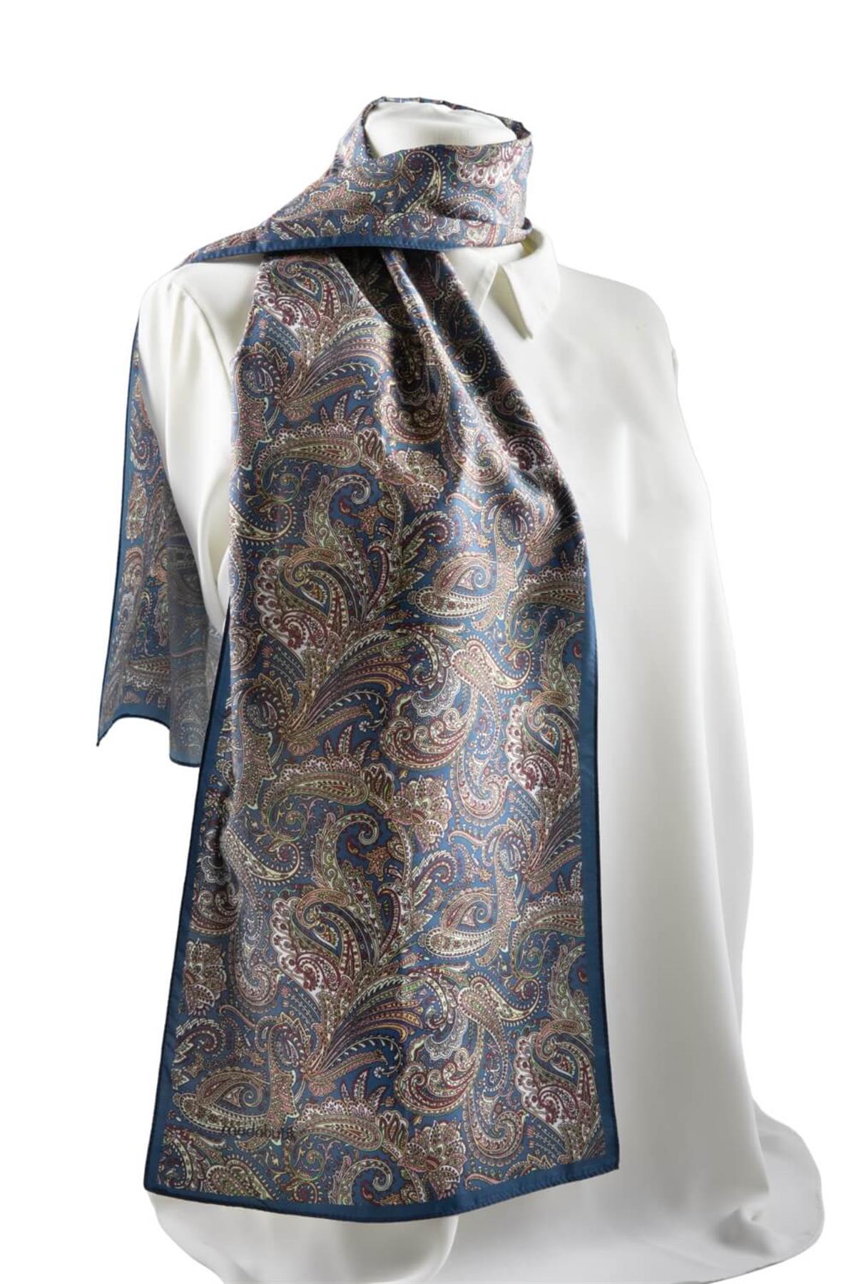 I31 Modabutik Şal Desenli Mavi Fular