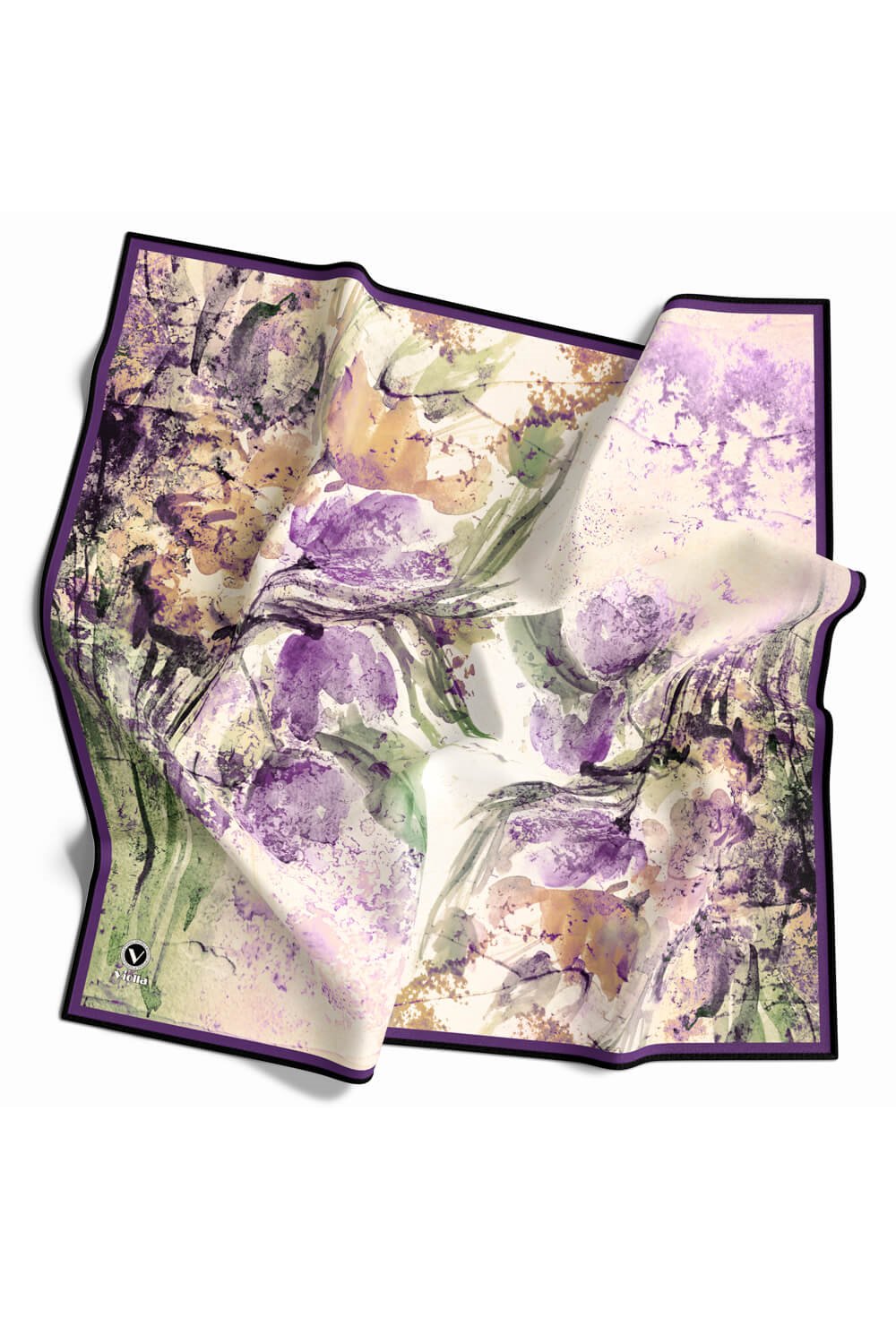 Rayon Sulu Boyalı Çiçek Desenli Mor Renkli 90x90 Eşarp (İpek İçermez) Kenar Dikiş Şekli El Dikişli (DGN51616-1)