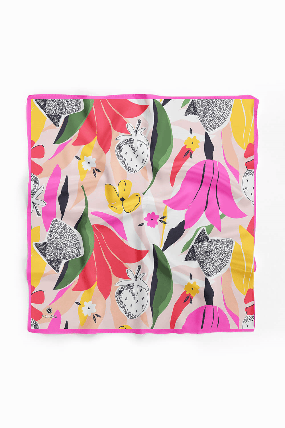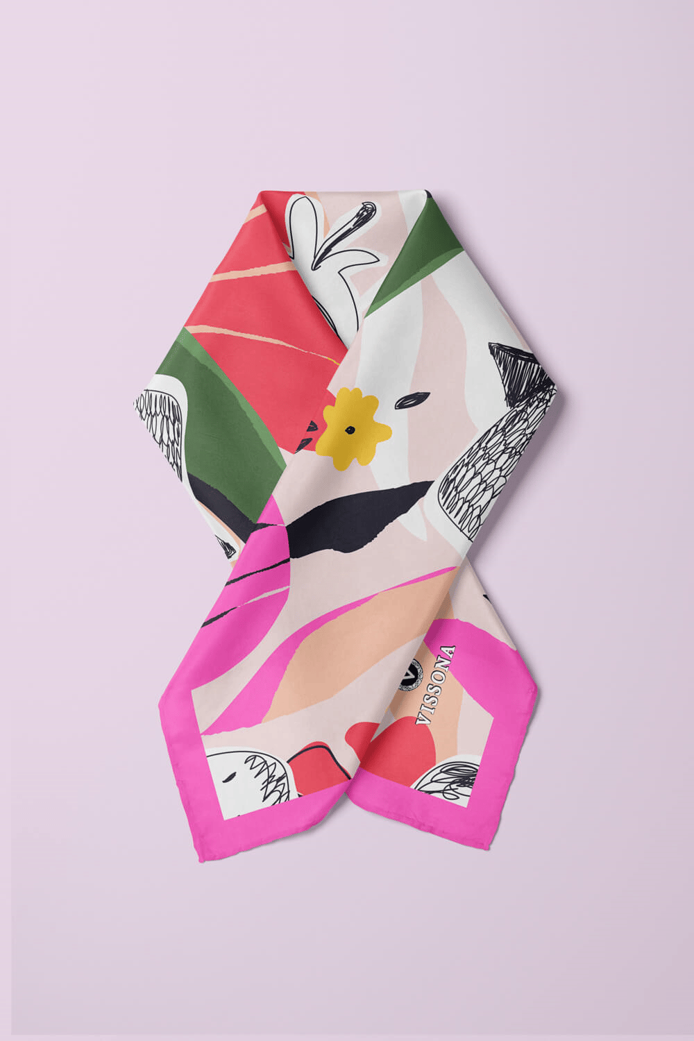 Saten İpek Çiçek Desenli Kadın Bandana (60539)