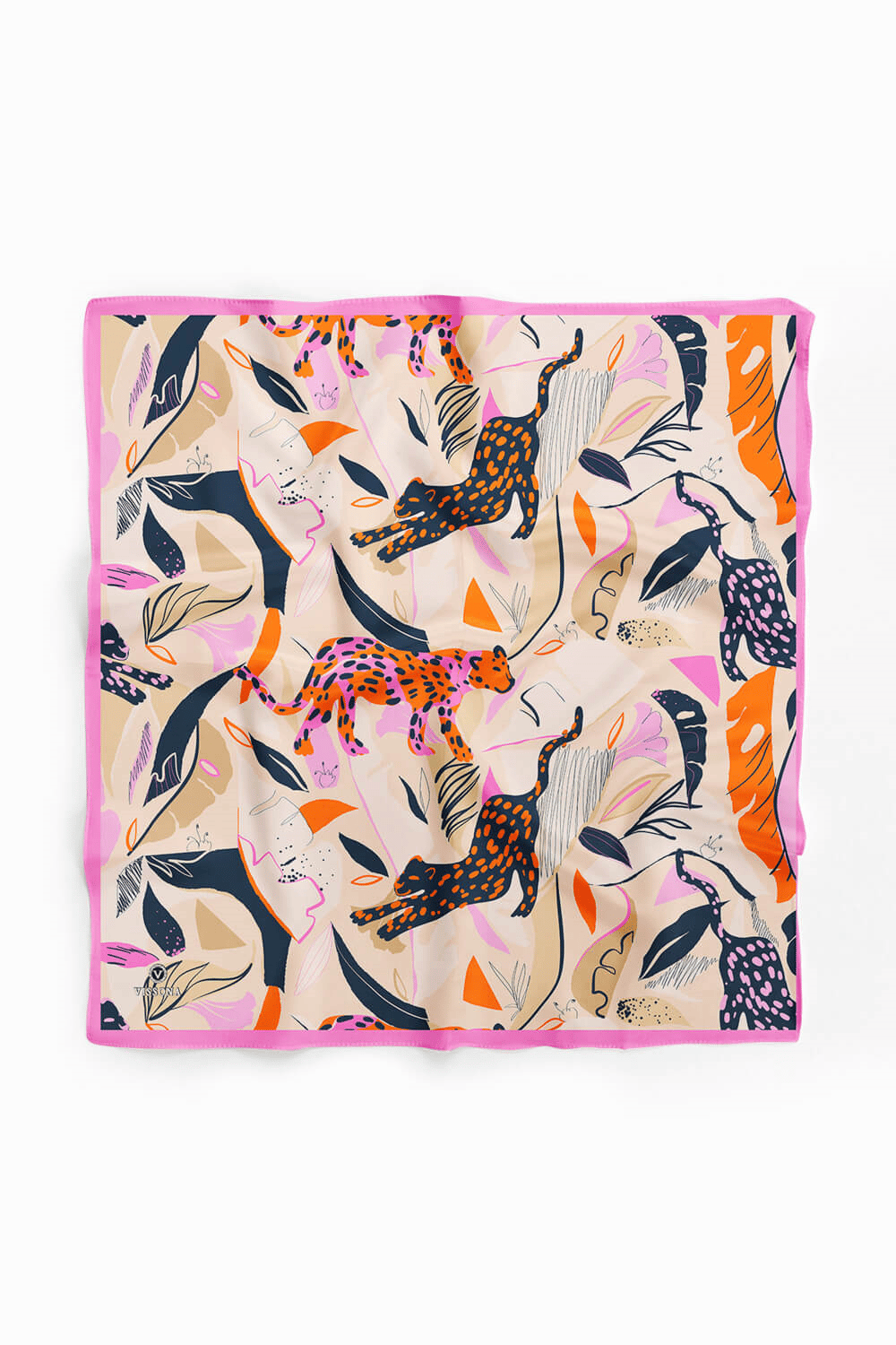 Saten İpek Kaplan Desenli Kadın Bandana (60532)