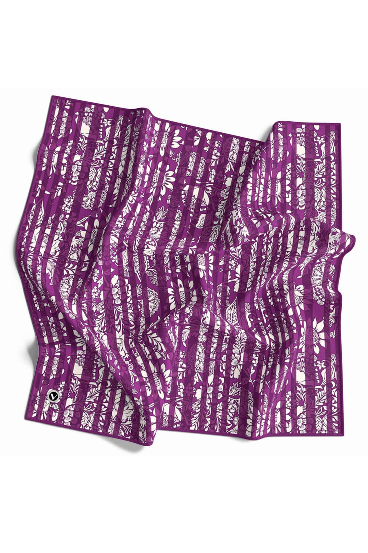 Twill Batik Şal Desenli Mürdüm Renkli 90x90 Eşarp (İpek İçermez) Kenar Dikiş Şekli El Dikişli