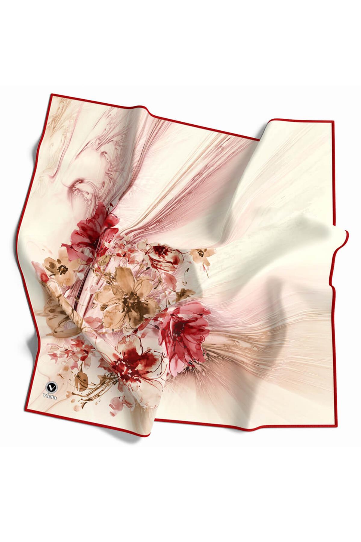 Twill Çiçek Desenli Bordo Renkli 90x90 Eşarp (İpek İçermez) Kenar Dikiş Şekli El Dikişli (DGN51792-2)