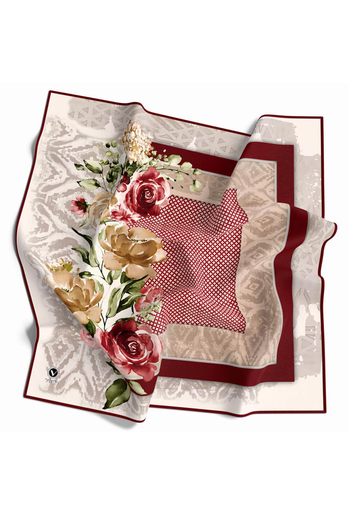 Twill Çiçek Desenli Bordo Renkli 90x90 Eşarp (İpek İçermez) Kenar Dikiş Şekli El Dikişli (DGN51779-4)