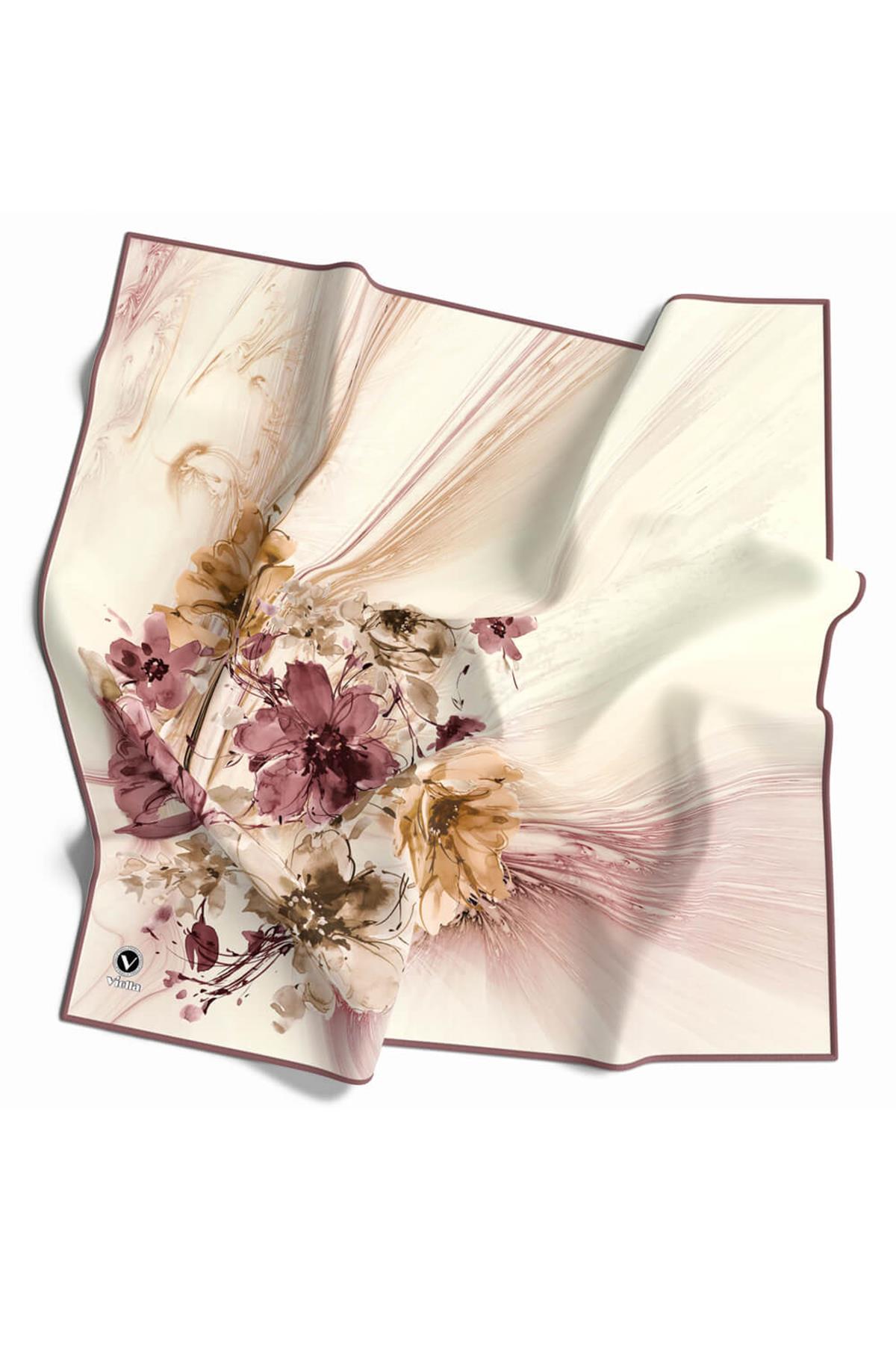 Twill Çiçek Desenli Gül Kurusu Renkli 90x90 Eşarp (İpek İçermez) Kenar Dikiş Şekli El Dikişli (DGN51792-4)