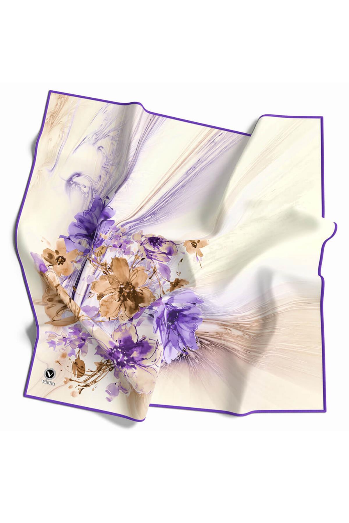Twill Çiçek Desenli Mor Renkli 90x90 Eşarp (İpek İçermez) Kenar Dikiş Şekli El Dikişli (DGN51792-6)