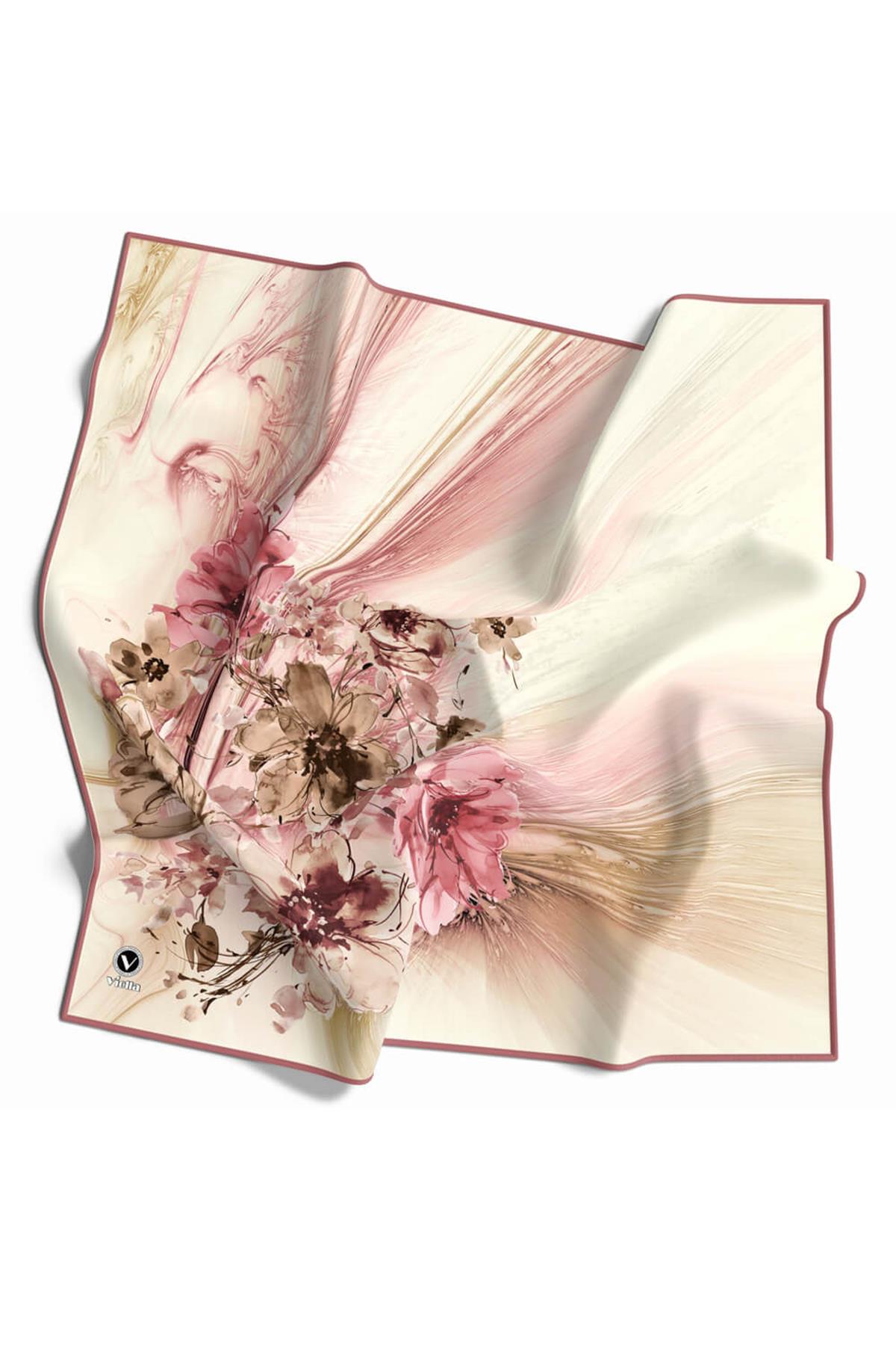 Twill Çiçek Desenli Pudra Renkli 90x90 Eşarp (İpek İçermez) Kenar Dikiş Şekli El Dikişli (DGN51792-3)
