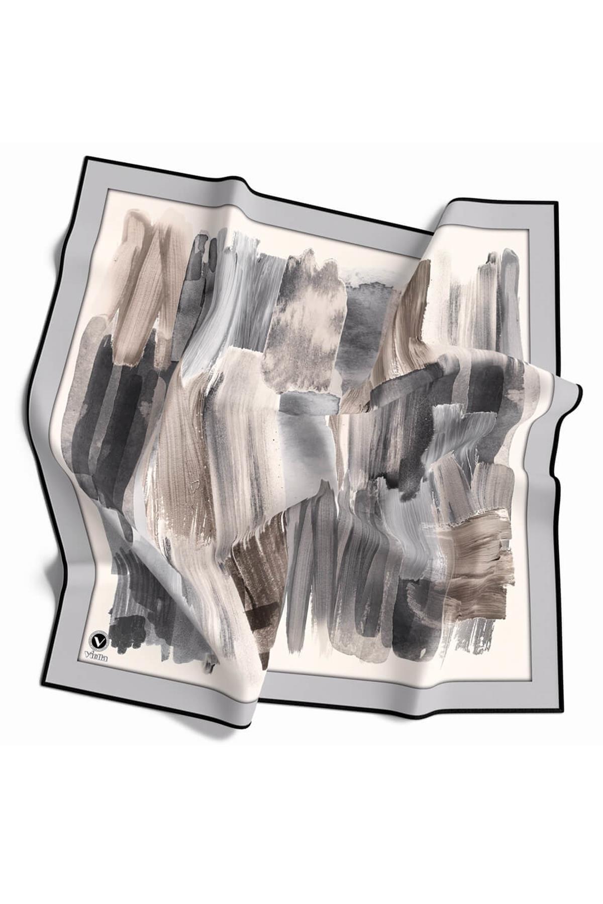 Twill Fırça Darbesi Desenli Gri Renkli 90x90 Eşarp (İpek İçermez) Kenar Dikiş Şekli El Dikişli (DGN51819-7)