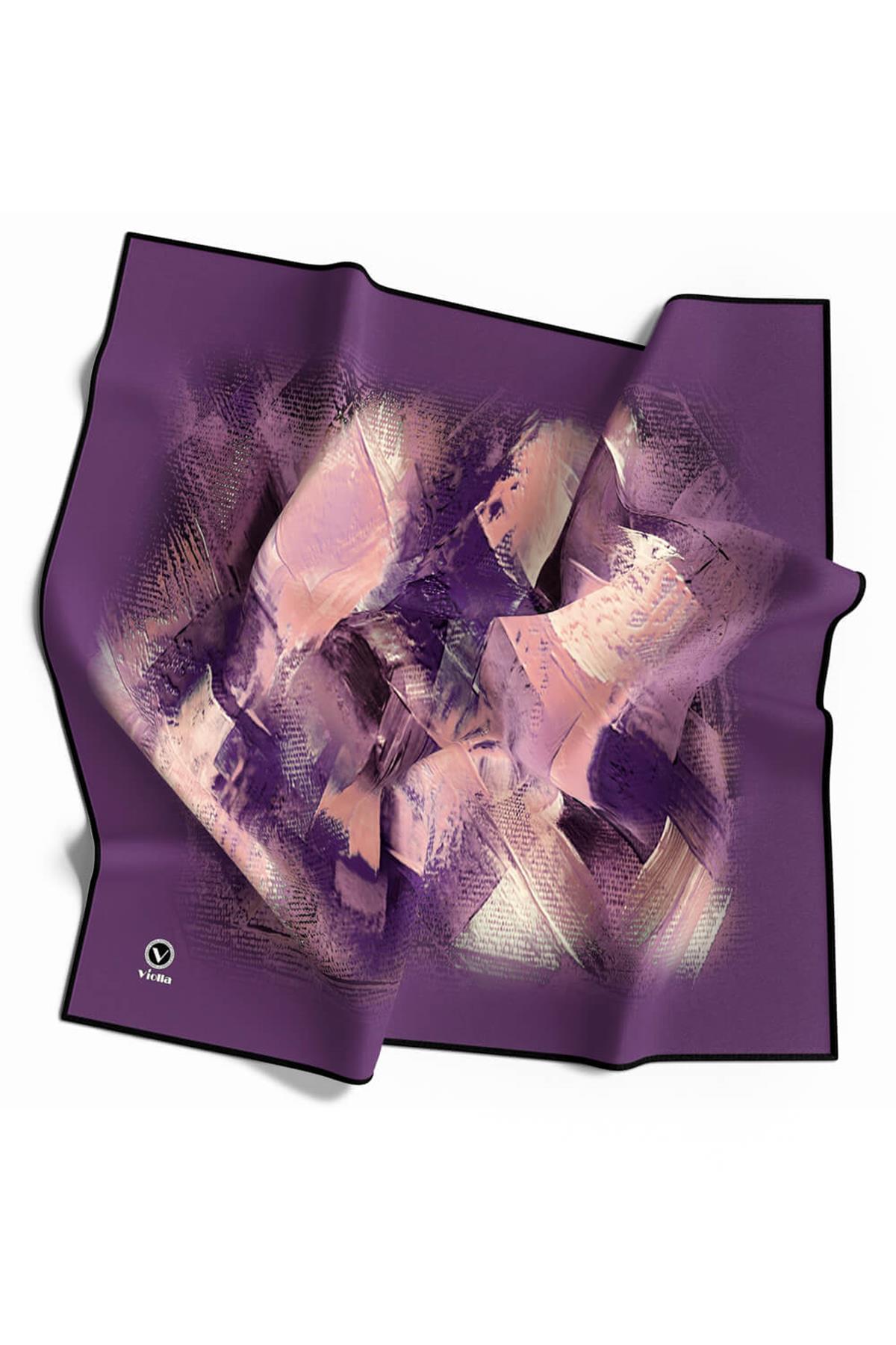 Twill Fırça Efektli Desenli Mor Renkli 90x90 Eşarp (İpek İçermez) Kenar Dikiş Şekli El Dikişli (DGN51815-5)