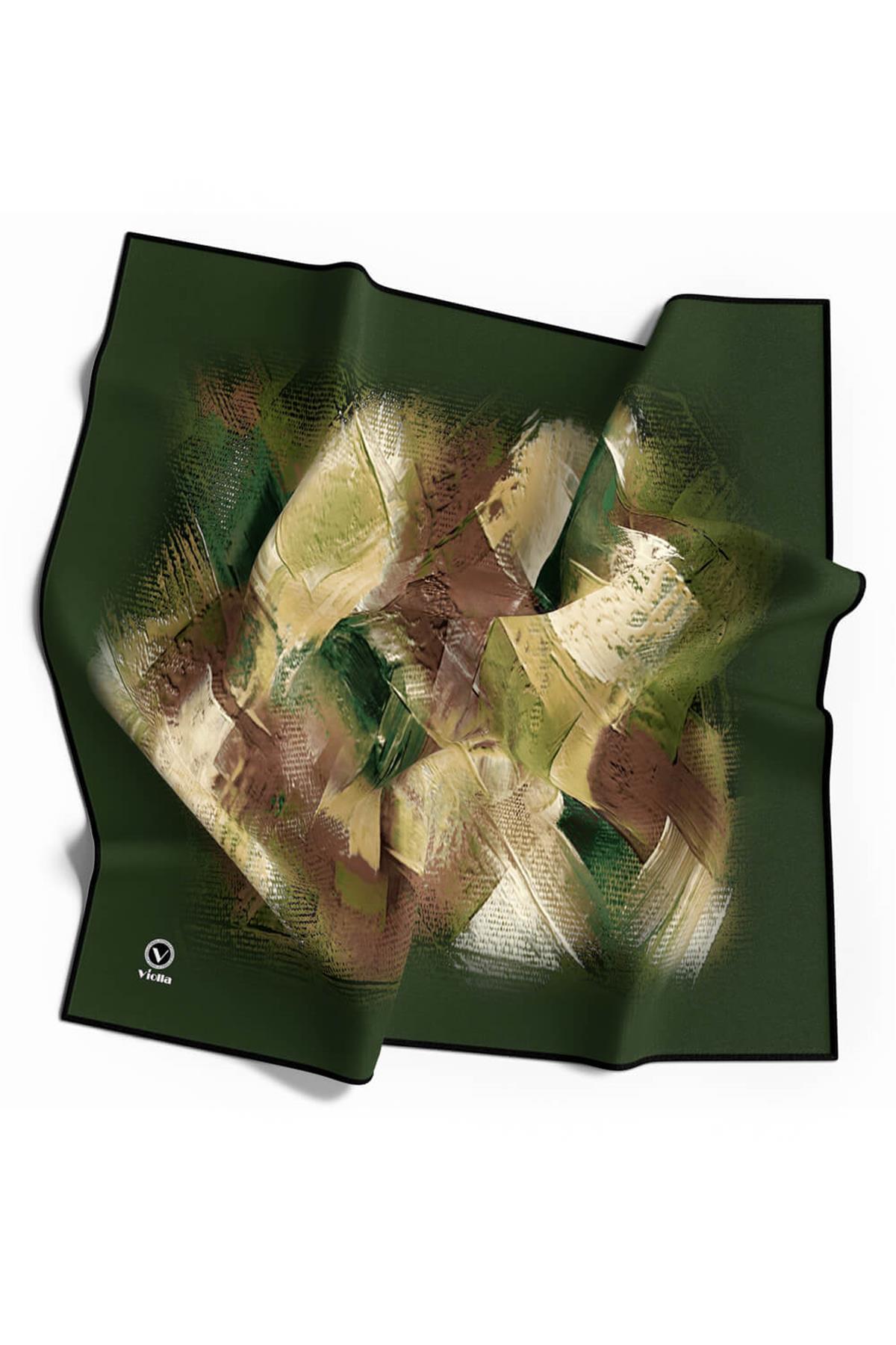 Twill Fırça Efektli Desenli Zümrüt Yeşili Renkli 90x90 Eşarp (İpek İçermez) Kenar Dikiş Şekli El Dikişli (DGN51815-9)