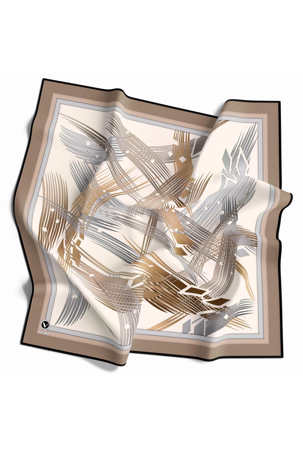 Twill Geometrik Desenli Bej Renkli 90x90 Eşarp (İpek İçermez) Kenar Dikiş Şekli El Dikişli (DGN51743-1)