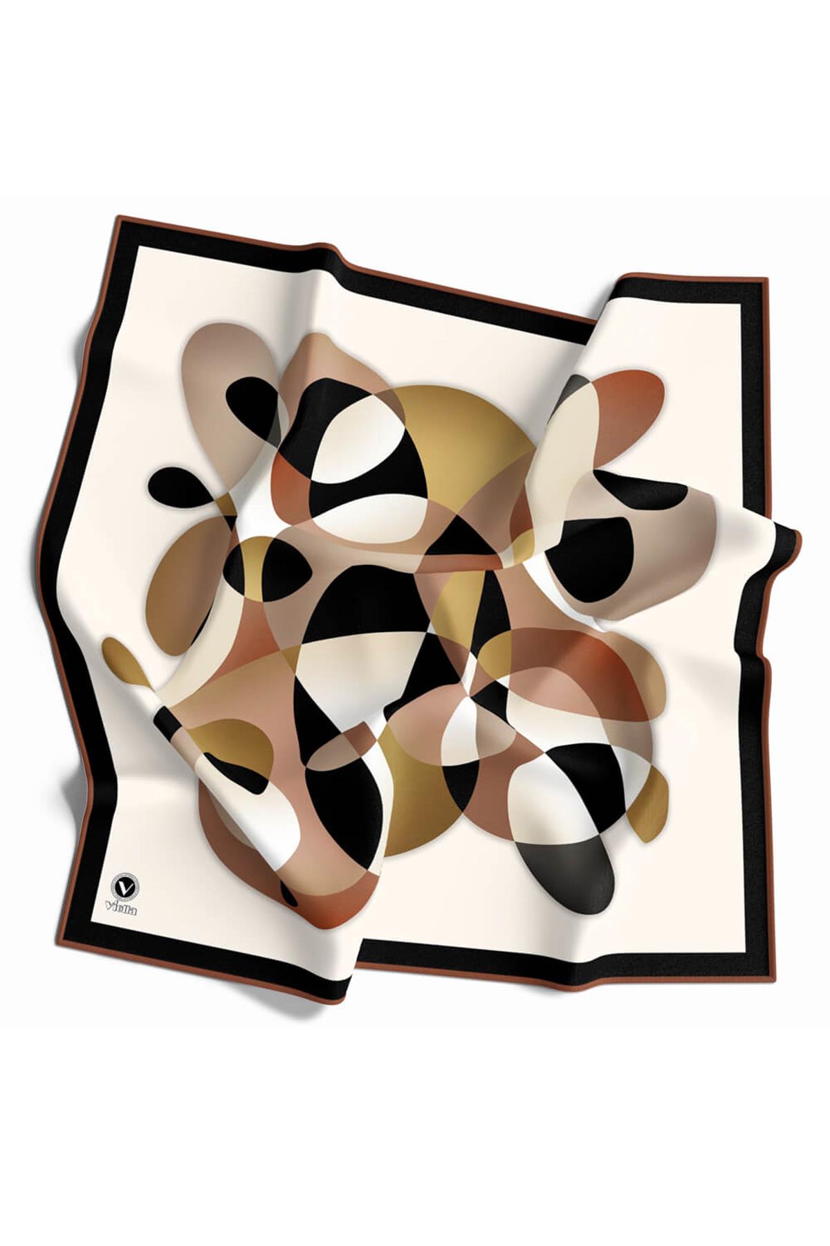 Twill Geometrik Desenli Hardal Renkli 90x90 Eşarp (İpek İçermez) Kenar Dikiş Şekli El Dikişli (DGN51740-2)