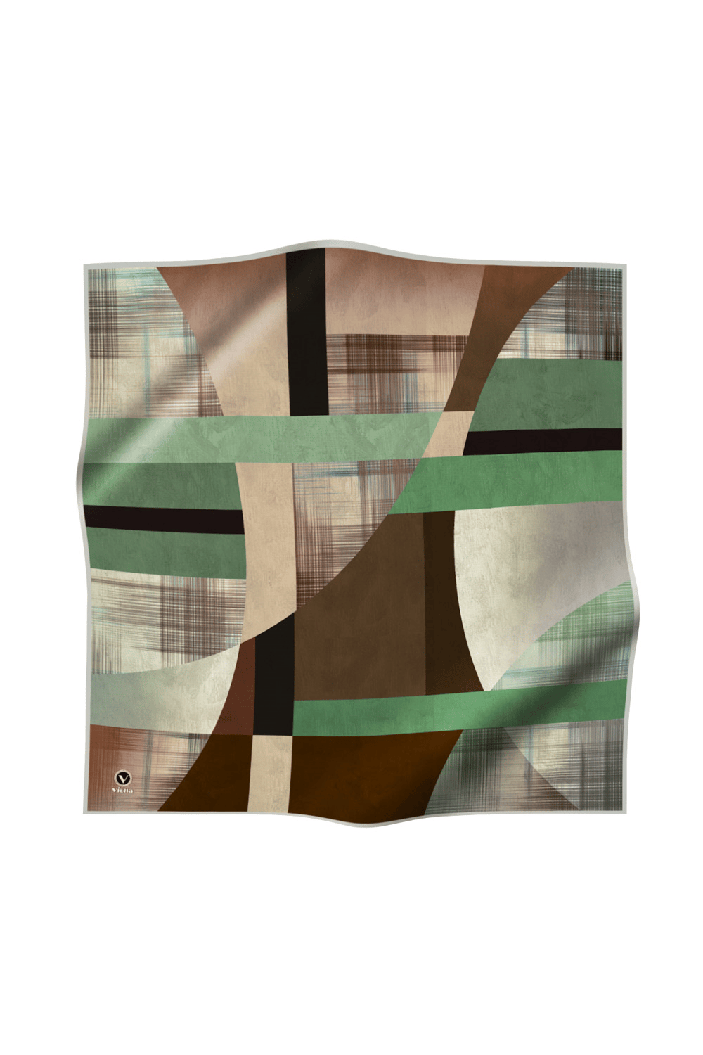 Twill Geometrik Desenli Kahverengi Renkli 90x90 Eşarp (İpek İçermez) Kenar Dikiş Şekli El Dikişli (7349-1)