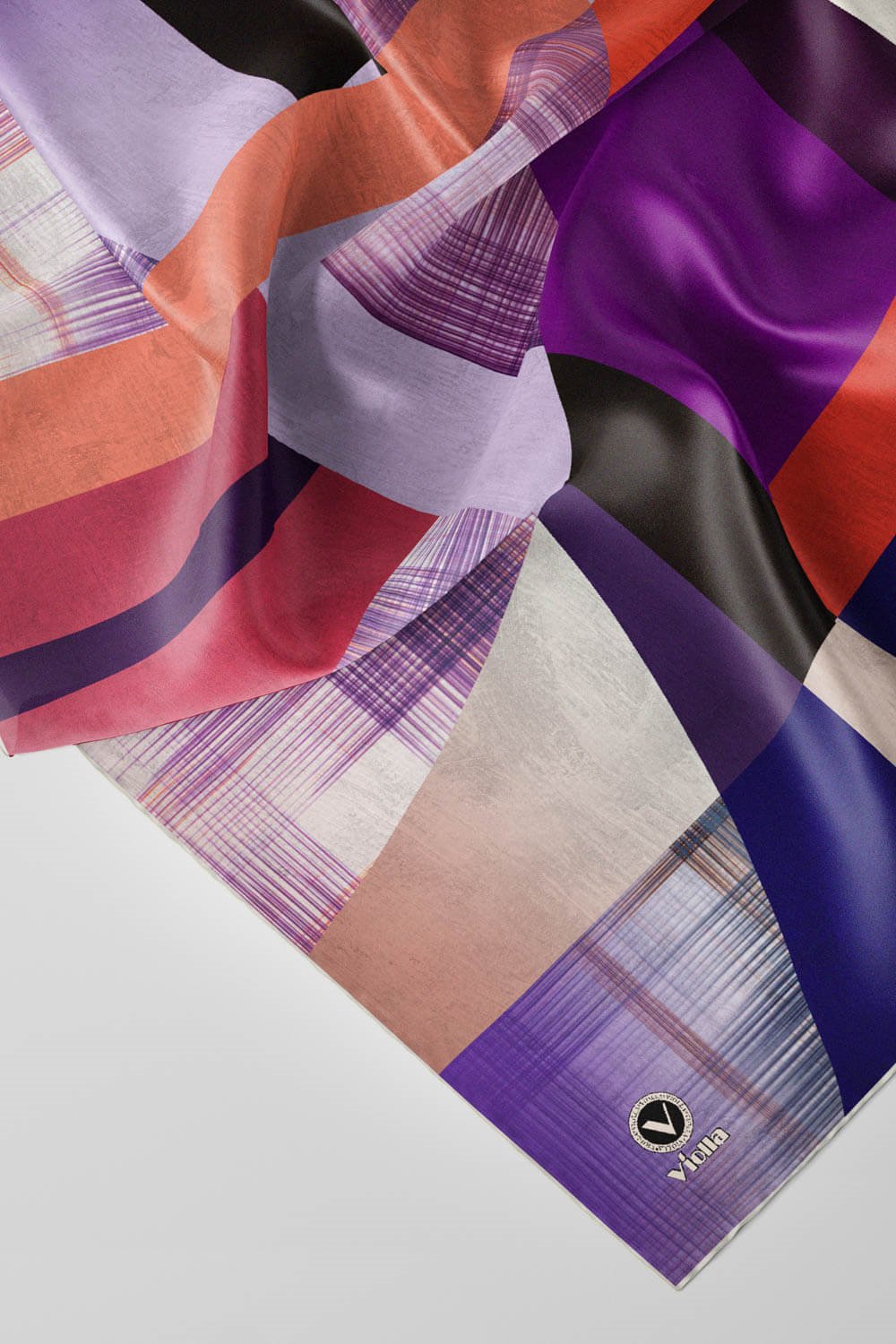 Twill Geometrik Desenli Mor Renkli 90x90 Eşarp (İpek İçermez) Kenar Dikiş Şekli El Dikişli