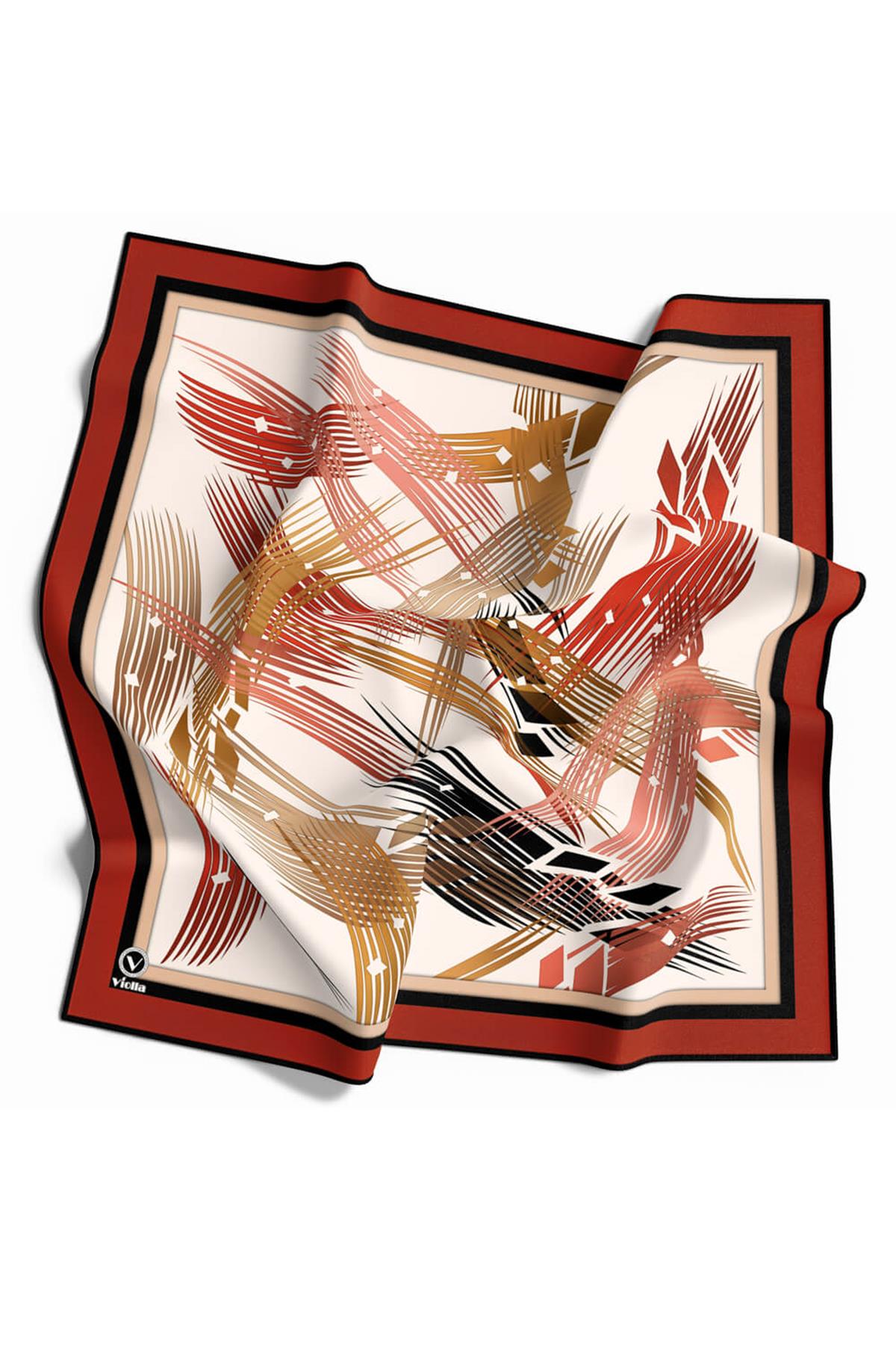 Twill Geometrik Desenli Taba Renkli 90x90 Eşarp (İpek İçermez) Kenar Dikiş Şekli El Dikişli (DGN51743-2)