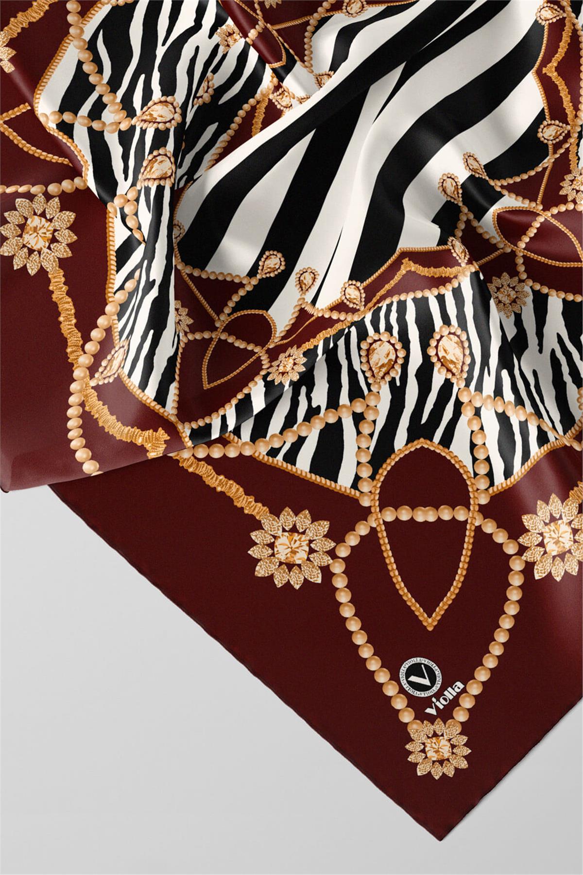 Twill Gold Detaylı Zebra Desenli Bordo Renkli 90x90 Eşarp (İpek İçermez) Kenar Dikiş Şekli El Dikişli (DGN51313-4)