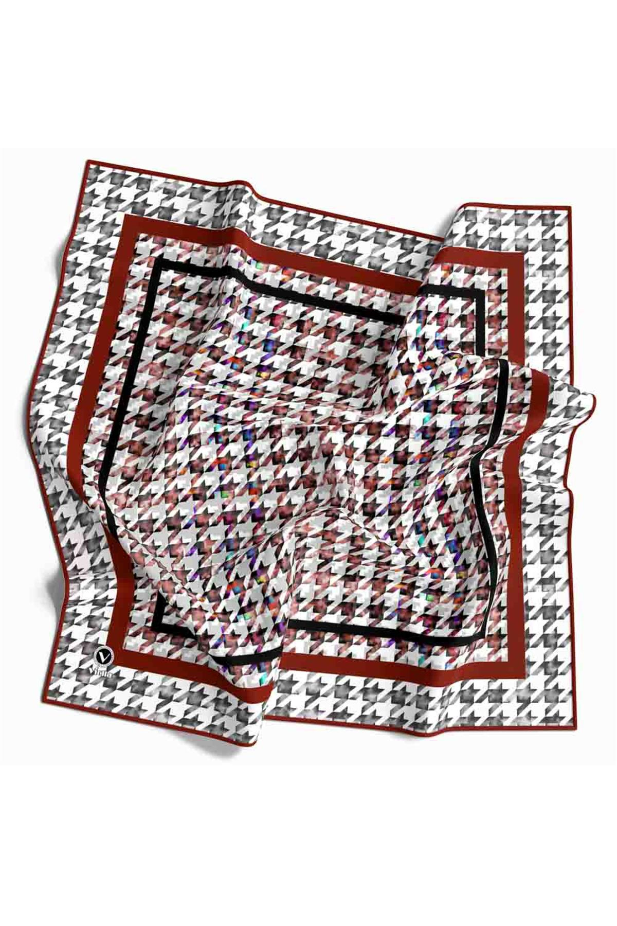Twill Kazayağı Desenli Bordo Renkli 90x90 Eşarp (İpek İçermez) Kenar Dikiş Şekli El Dikişli (DGN51288-4)