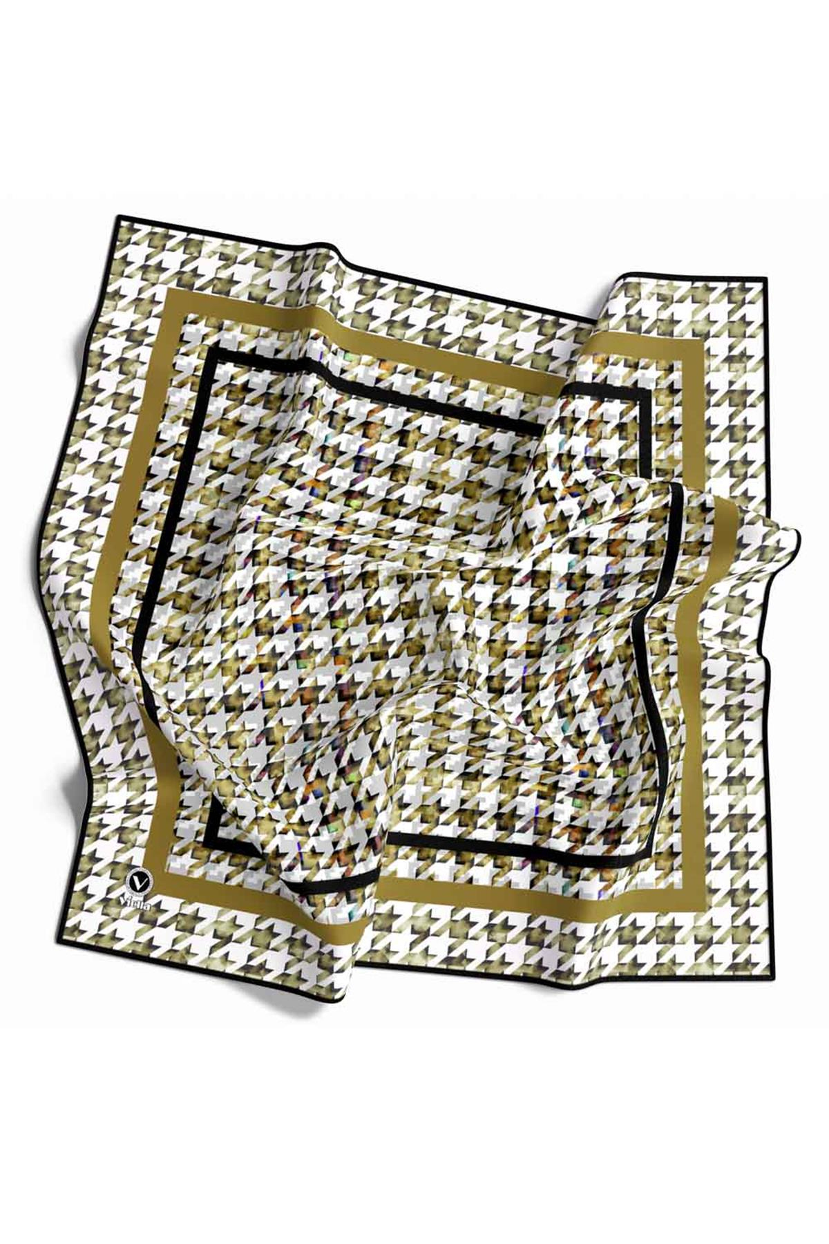 Twill Kazayağı Desenli Hardal Renkli 90x90 Eşarp (İpek İçermez) Kenar Dikiş Şekli El Dikişli (DGN51288-2)