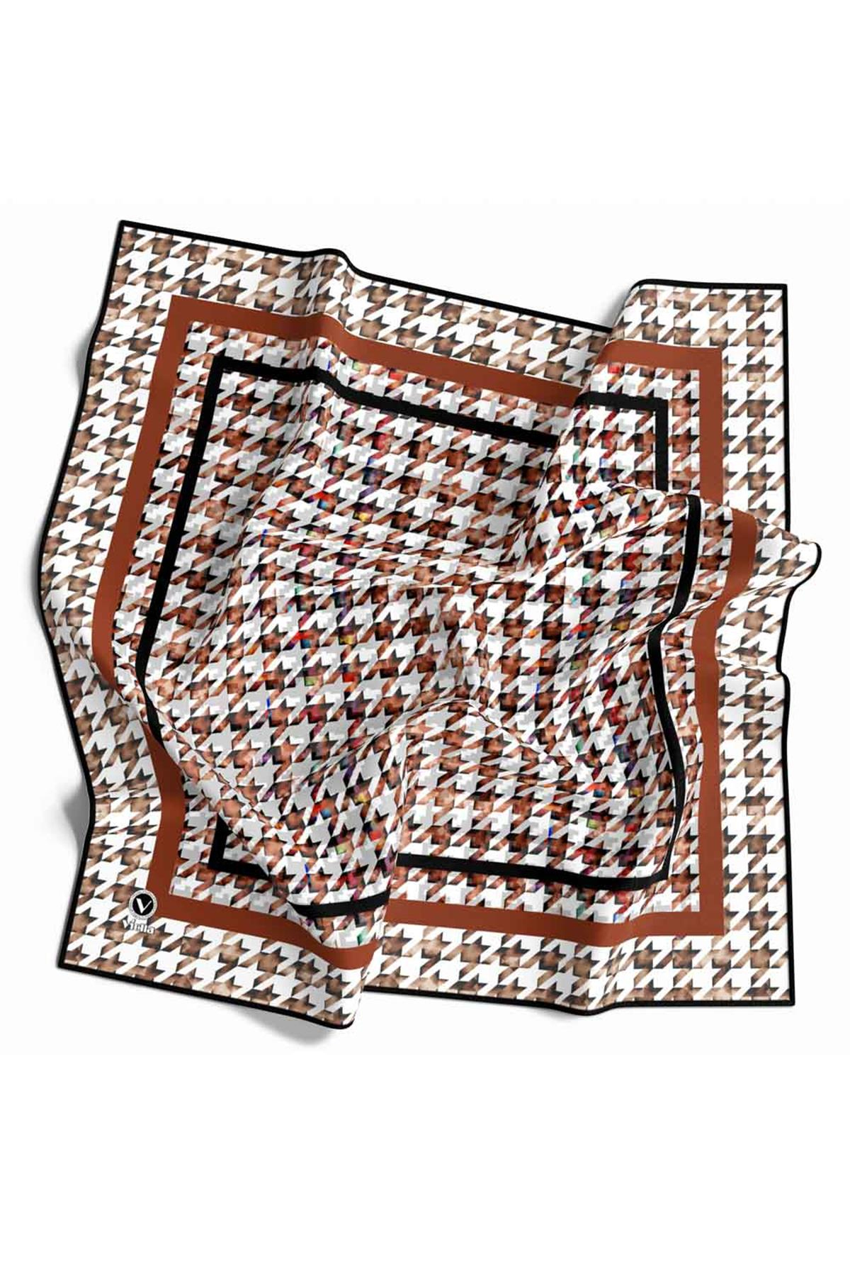 Twill Kazayağı Desenli Taba Renkli 90x90 Eşarp (İpek İçermez) Kenar Dikiş Şekli El Dikişli (DGN51288-3)