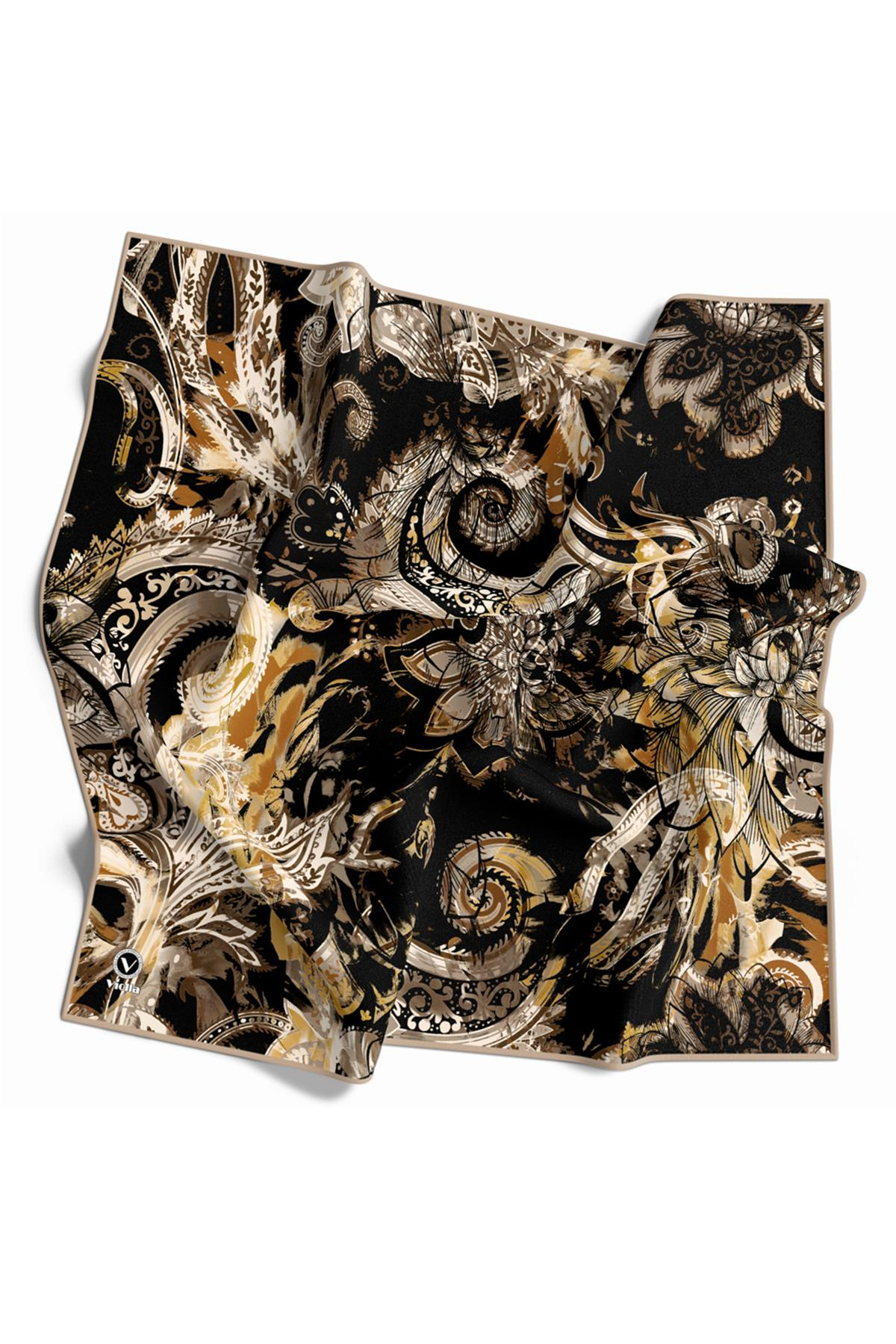 Twill Şal Desenli Bej Renkli 90x90 Eşarp (İpek İçermez) Kenar Dikiş Şekli El Dikişli (DGN51729)