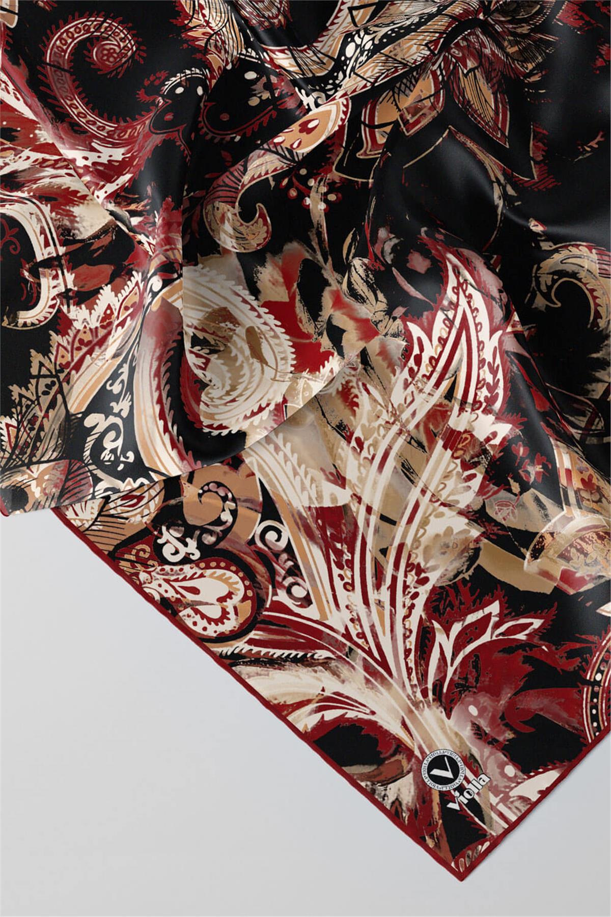 Twill Şal Desenli Bordo Renkli 90x90 Eşarp (İpek İçermez) Kenar Dikiş Şekli El Dikişli (DGN51729-2)