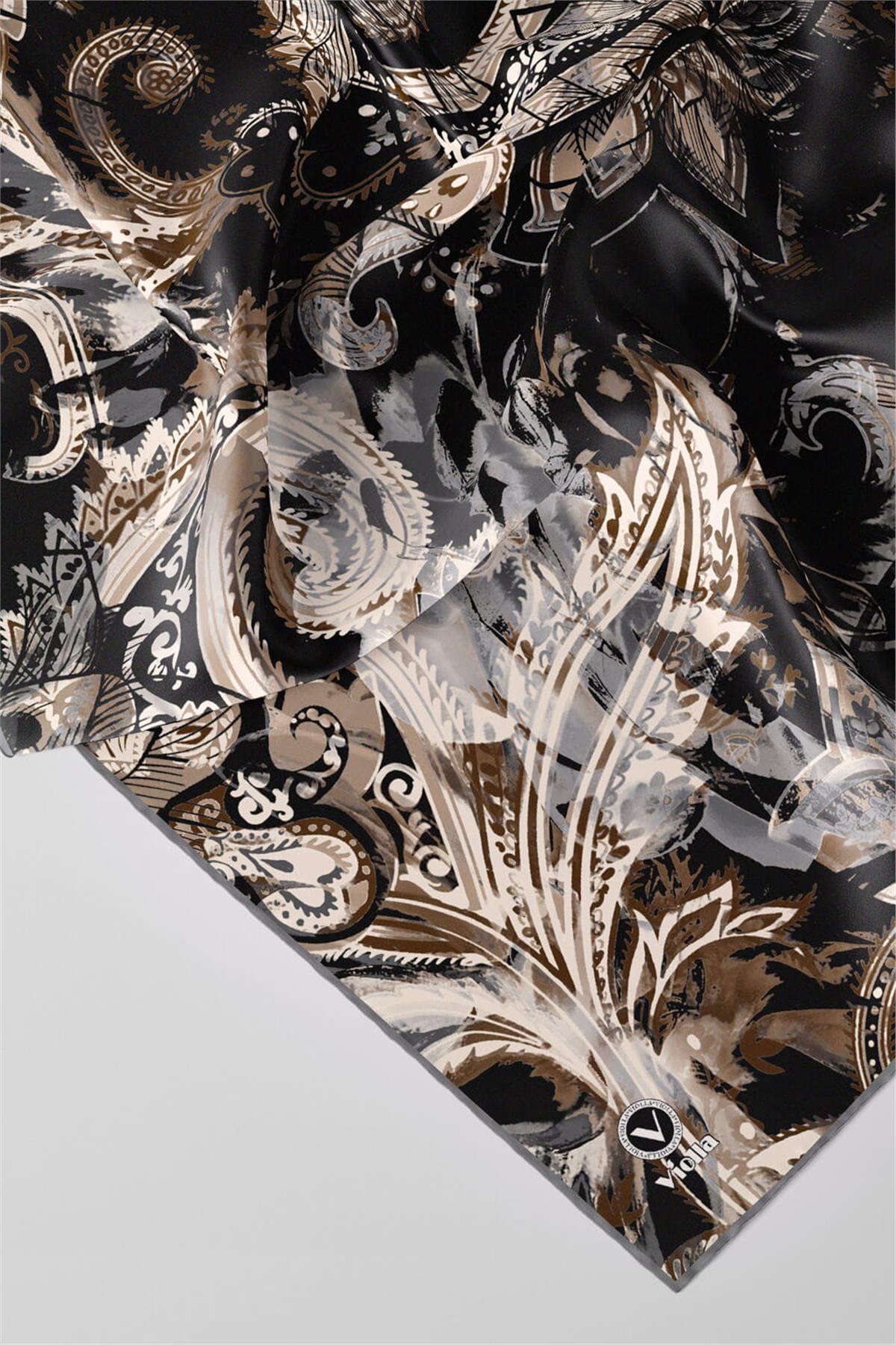 Twill Şal Desenli Gri Renkli 90x90 Eşarp (İpek İçermez) Kenar Dikiş Şekli El Dikişli (DGN51729-5)