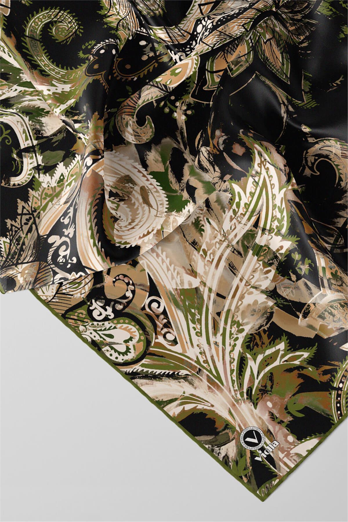 Twill Şal Desenli Haki Renkli 90x90 Eşarp (İpek İçermez) Kenar Dikiş Şekli El Dikişli (DGN51729-8)