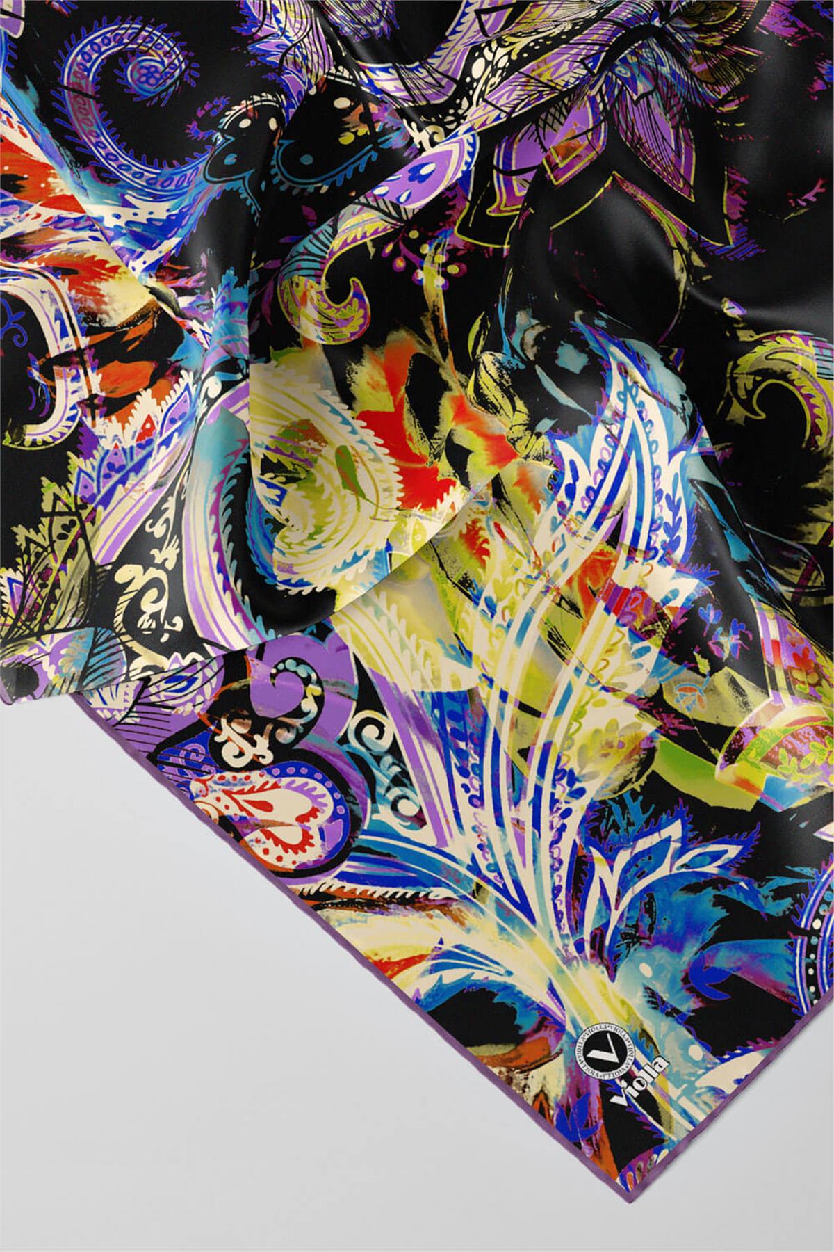 Twill Şal Desenli Lila Renkli 90x90 Eşarp (İpek İçermez) Kenar Dikiş Şekli El Dikişli (DGN51729-3)