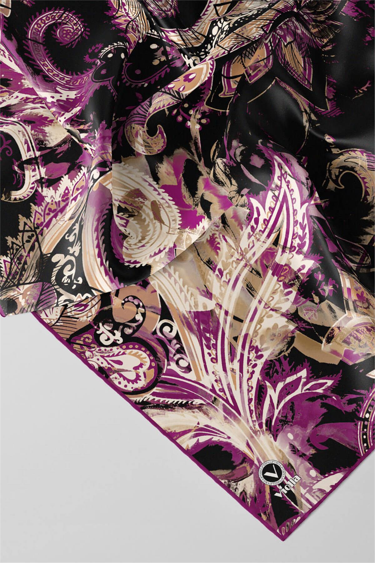 Twill Şal Desenli Mürdüm Renkli 90x90 Eşarp (İpek İçermez) Kenar Dikiş Şekli El Dikişli (DGN51729-4)
