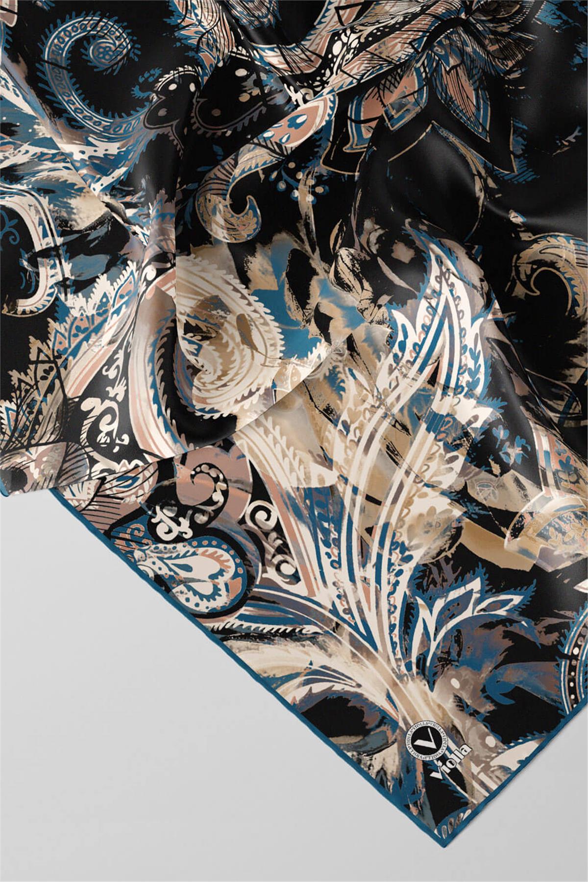 Twill Şal Desenli Petrol Yeşili Renkli 90x90 Eşarp (İpek İçermez) Kenar Dikiş Şekli El Dikişli (DGN51729-9)