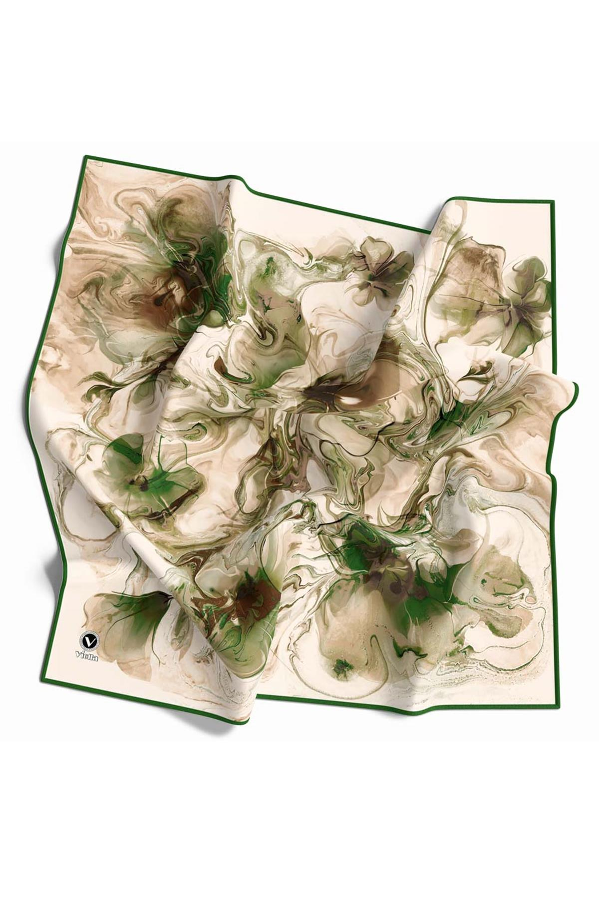 Twill Soyut Desenli Zümrüt Yeşili Renkli 90x90 Eşarp (İpek İçermez) Kenar Dikiş Şekli El Dikişli (DGN51798-10)